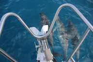 To cheer everyone up we were greeted by a very large pod of dolphins that joined us under sail in the morning. They cruised along with us for nearly half an hour jumping across our bow, and circling back and racing up ahead again and again. It was really fantastic to watch while sailing along.
